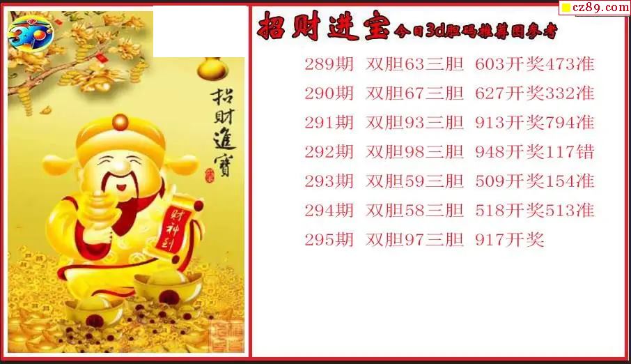 > 25年295期3d 招财进宝今日胆码推荐图参考