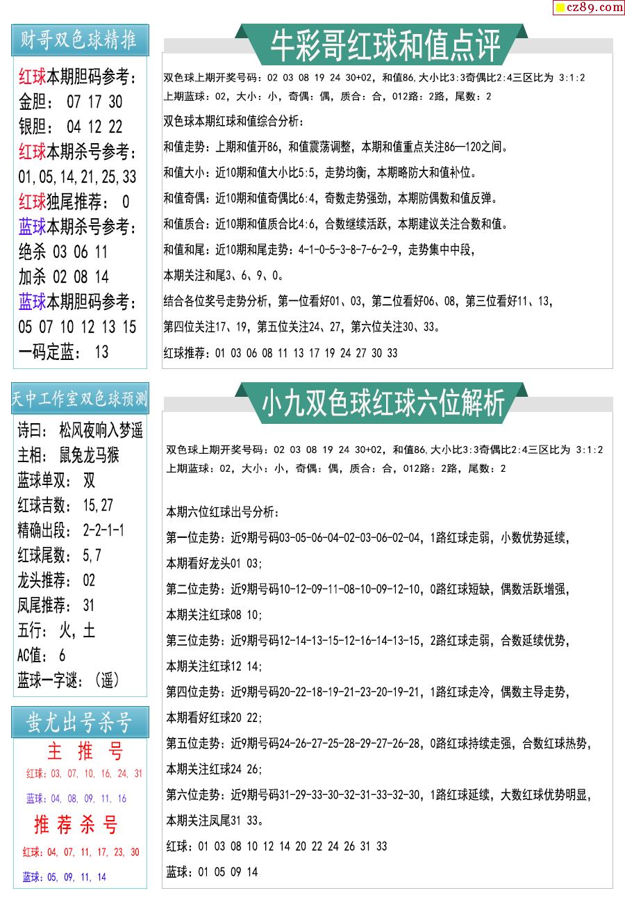 双色球128期 彩宝贝专家红蓝球杀号预测图表