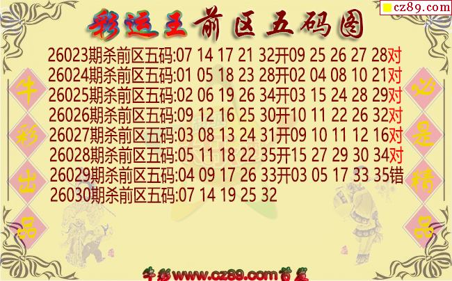 > 大乐透2026030期彩运王前区五码图谜