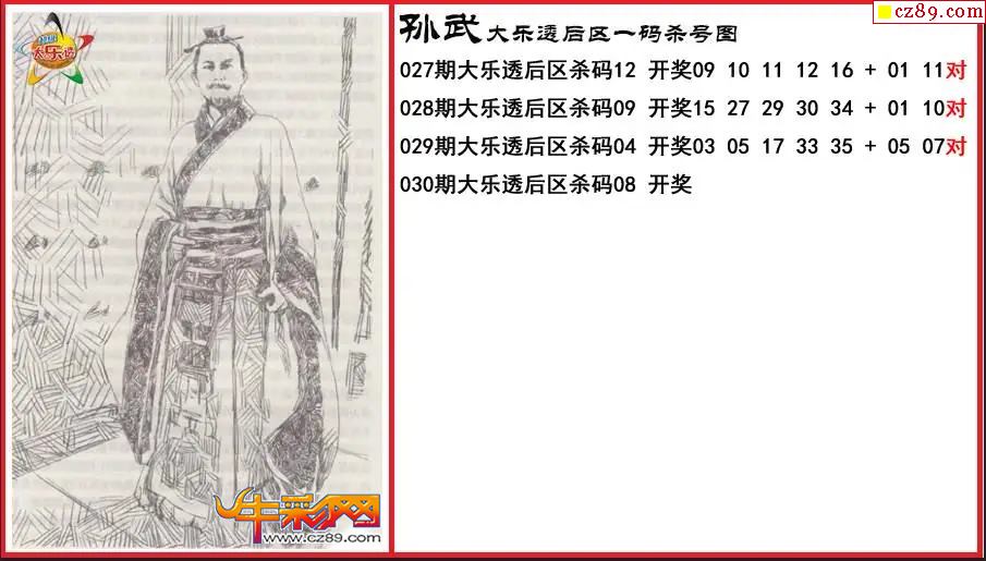 大乐透030期孙武后区一码杀号图